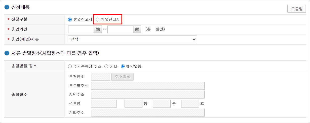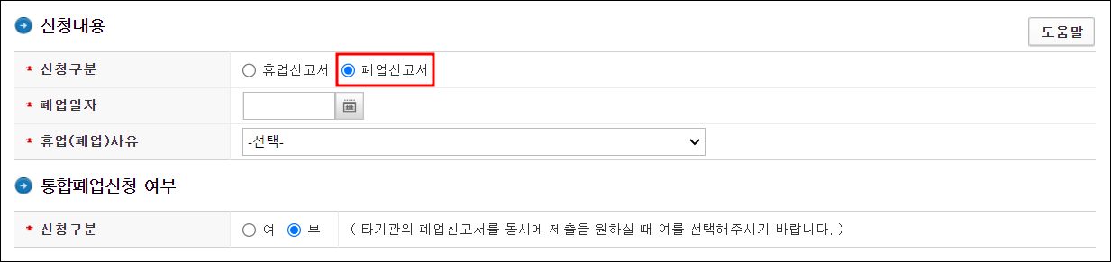 ▼ 휴·폐업 신고하는 화면입니다.